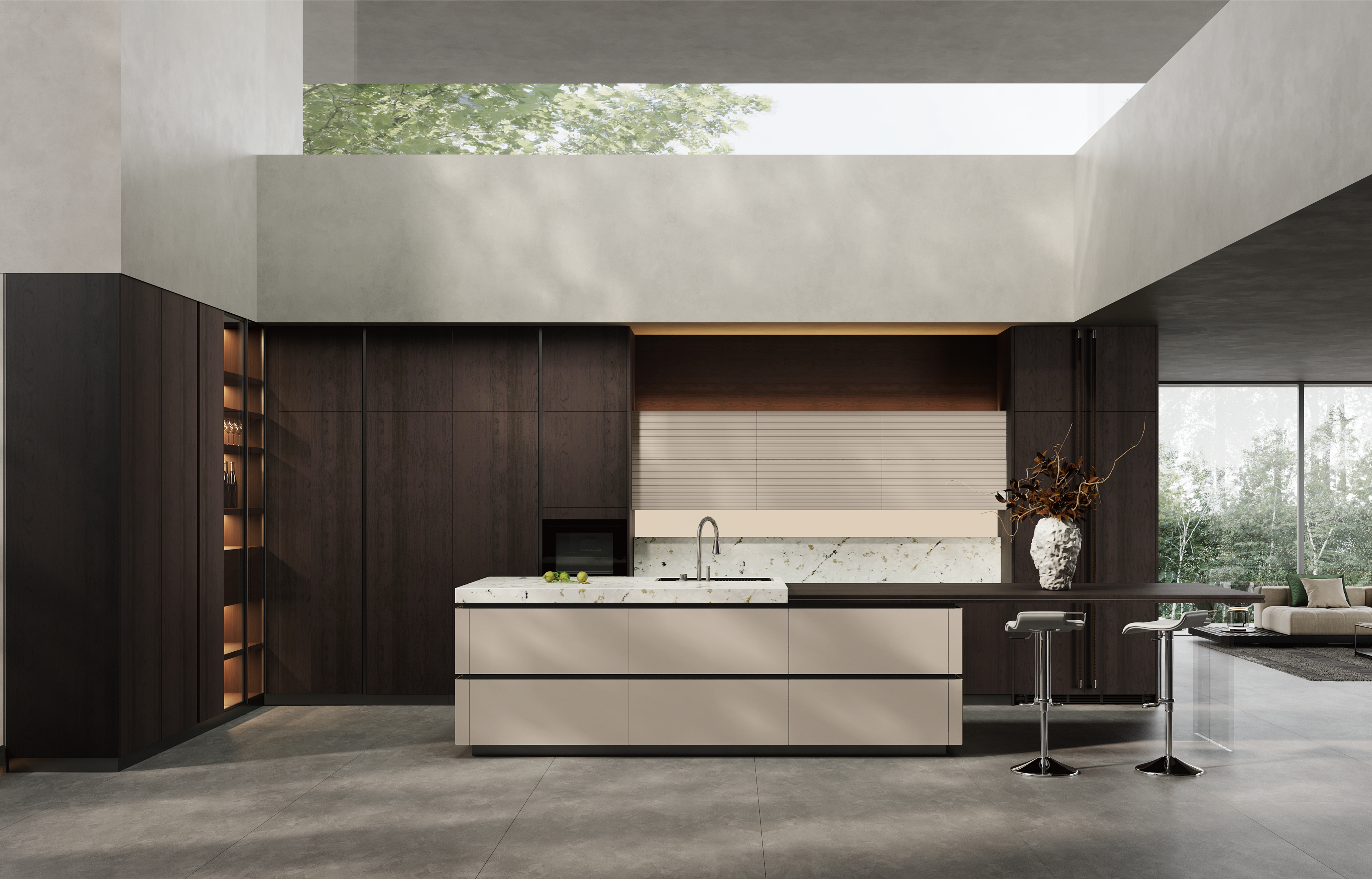 通过拉斯维加斯9888厨柜量体裁柜,定制出适合主厨下厨的烹饪区和洗涤区的舒适高度。